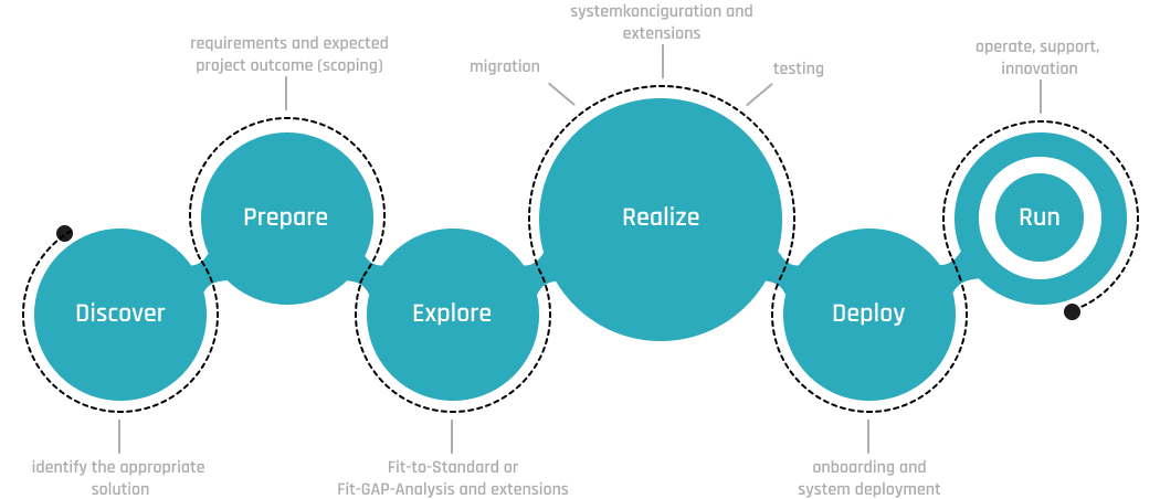 Using predefined best practices, clear roadmaps and agile methods, SAP S/4HANA projects can be implemented quickly and in a structured manner.